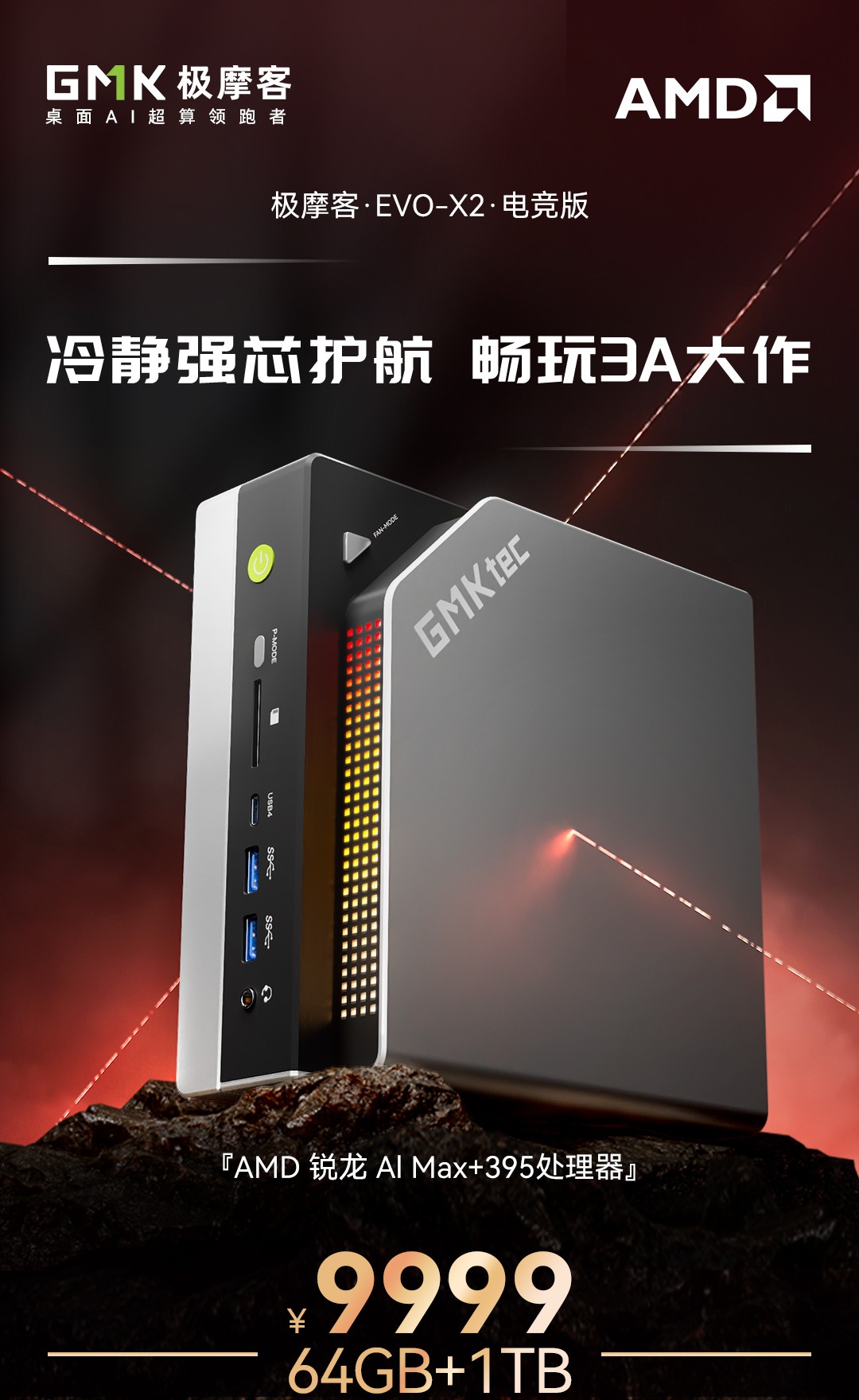 极摩客并未公布 EVO-X2 电竞版的更多信息,1 个 2.5GbE RJ45、极摩客今日下午确认 EVO-X2 电竞版 (64GB + 1TB) 迷你主机的定价为 9999 元,安全锁孔。